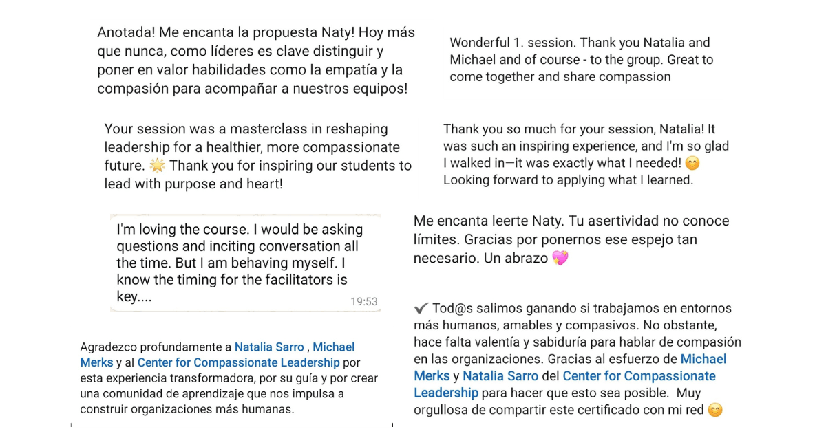 Si tuvieses interés en formarte como Instructora Certificada, el siguiente paso es postularte al Compassionate Leadership Teacher Training (que imparten Laura Berland y Evan Harrel, co-fundadores de CFCL).